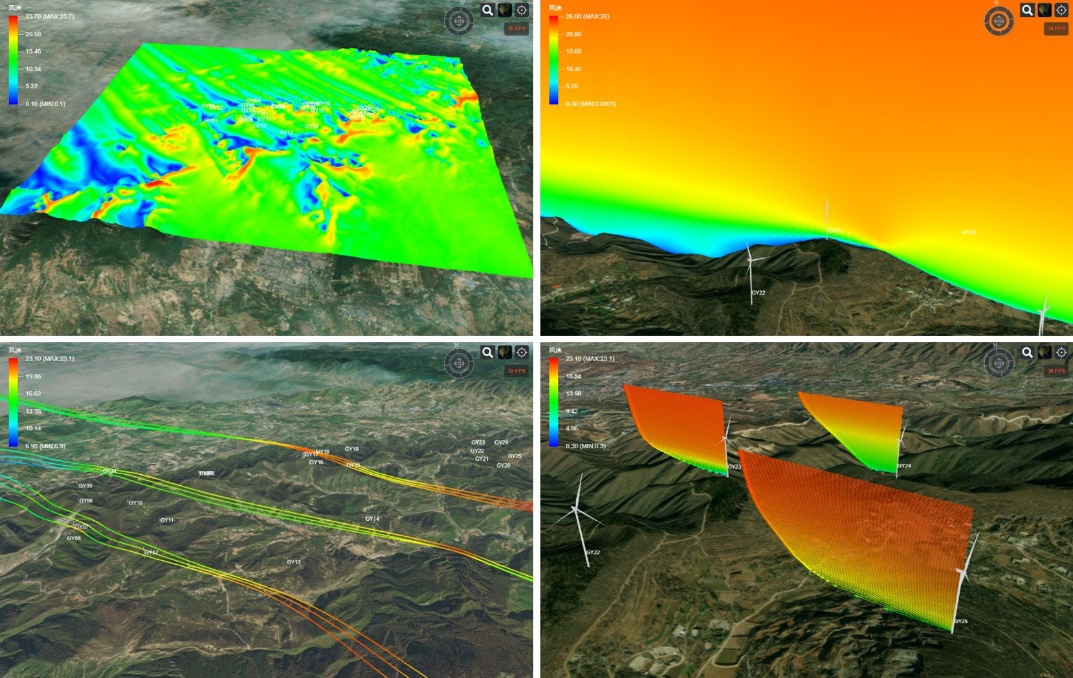 “運(yùn)風(fēng)”還對(duì)CFD仿真各環(huán)節(jié)的關(guān)鍵參數(shù)進(jìn)行大量測(cè)試、驗(yàn)證,并研發(fā)了基于仿真結(jié)果特征的收斂判據(jù),最終形成了一套自動(dòng)化程度極高的CFD仿真流程。利用“運(yùn)風(fēng)”,無(wú)任何CFD基礎(chǔ)的用戶也可以發(fā)起流動(dòng)仿真,并獲得可靠結(jié)果,從而專注于項(xiàng)目評(píng)估和結(jié)果分析。此外,“運(yùn)風(fēng)”還集成了基于GIS的3D可視化模塊,將流場(chǎng)仿真結(jié)果實(shí)景呈現(xiàn)于地形之上,方便用戶查看和分析。