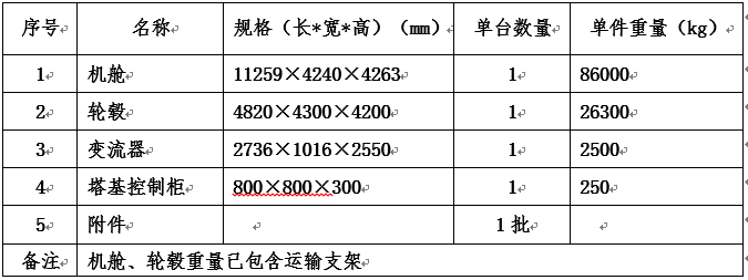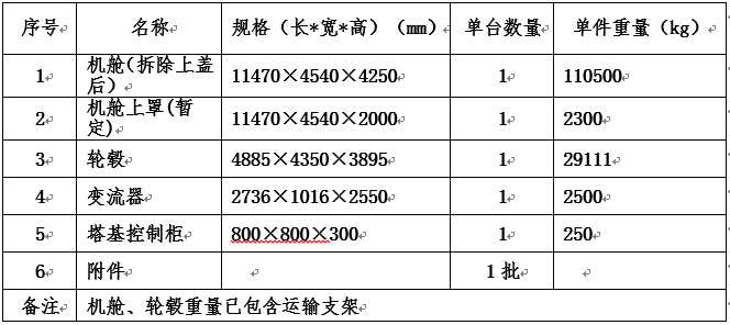 特別備注:2.5MW機(jī)艙因尺寸超高,運(yùn)輸時(shí)需要將上部機(jī)艙罩拆除后分兩部分進(jìn)行運(yùn)輸,投標(biāo)人報(bào)價(jià)時(shí)考慮兩部分運(yùn)輸?shù)耐稑?biāo)報(bào)價(jià)。